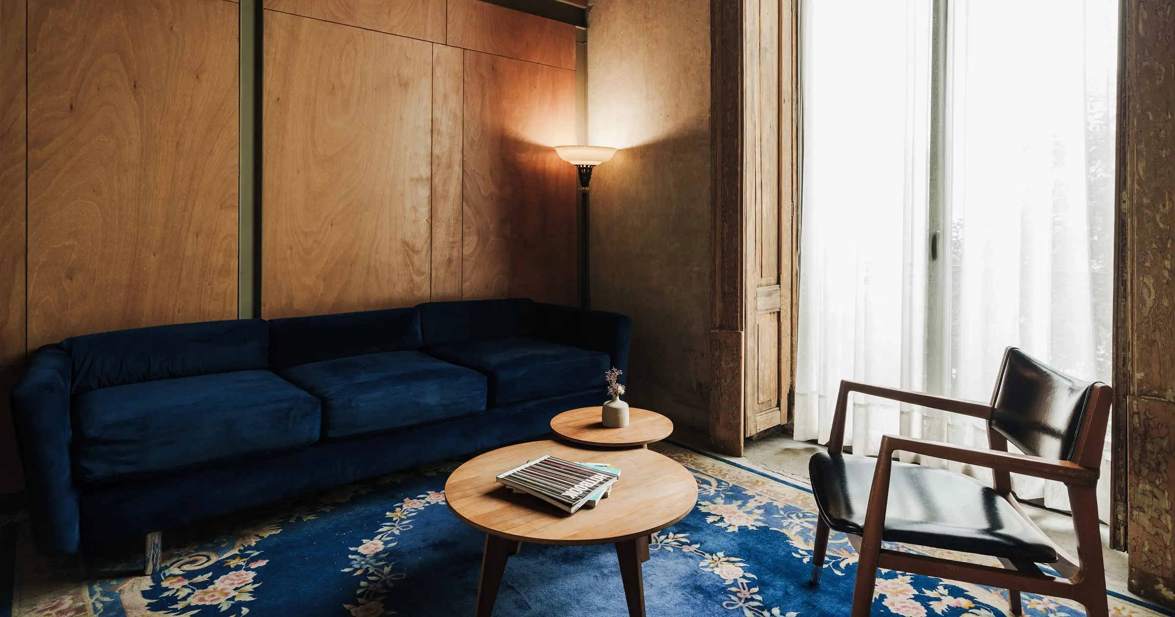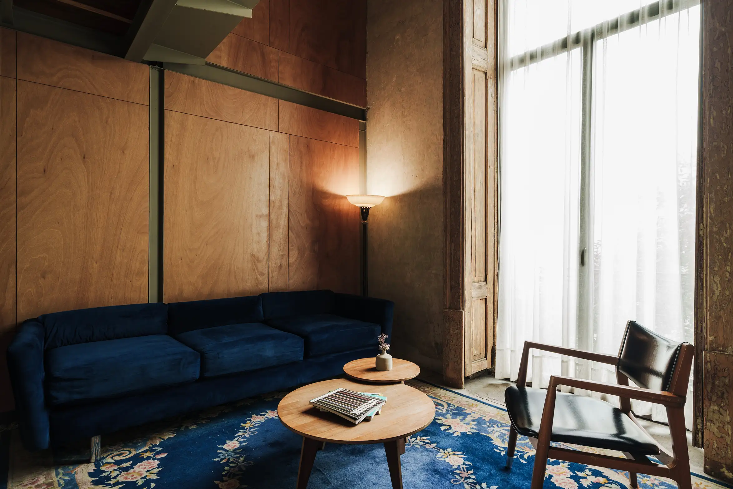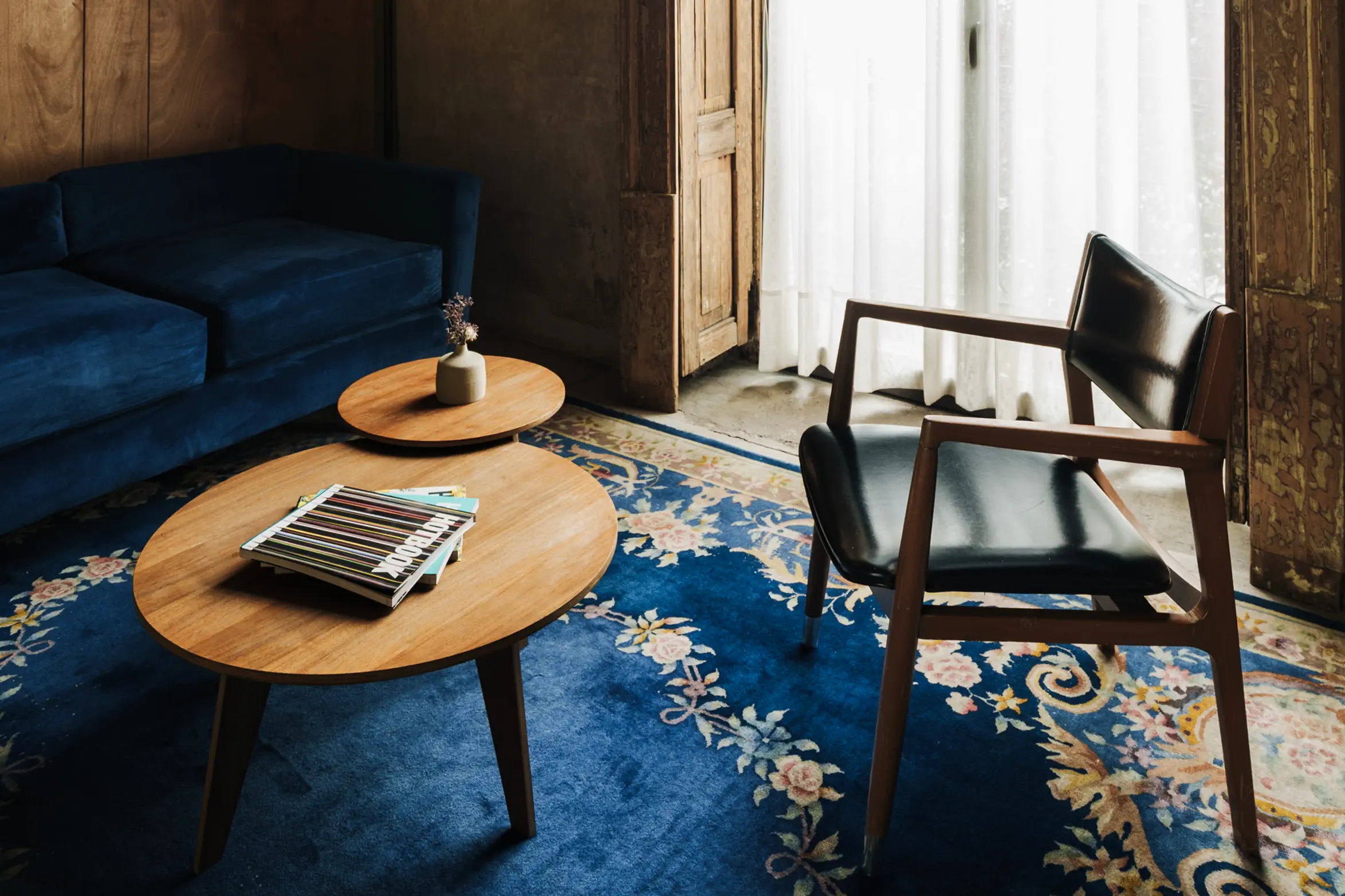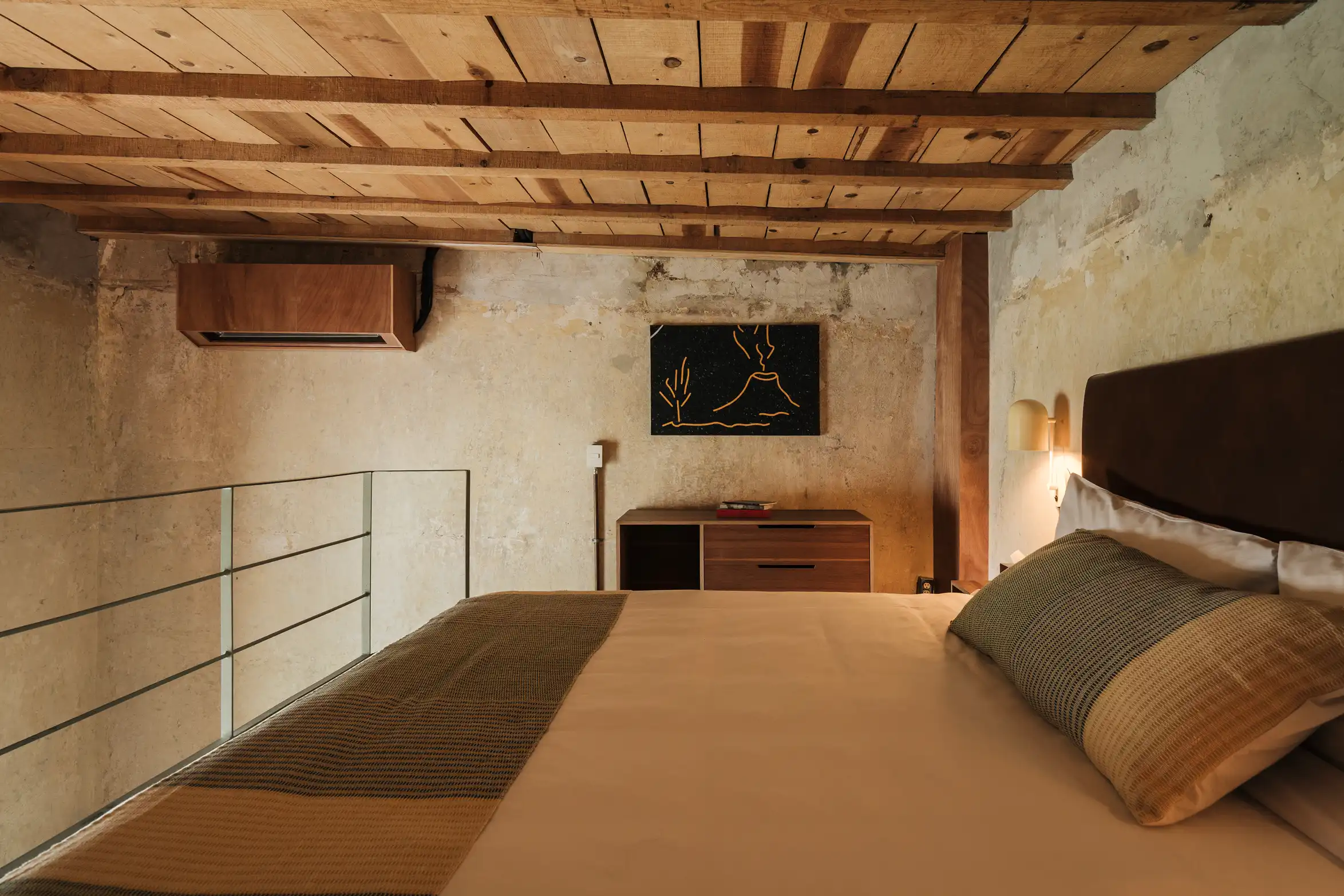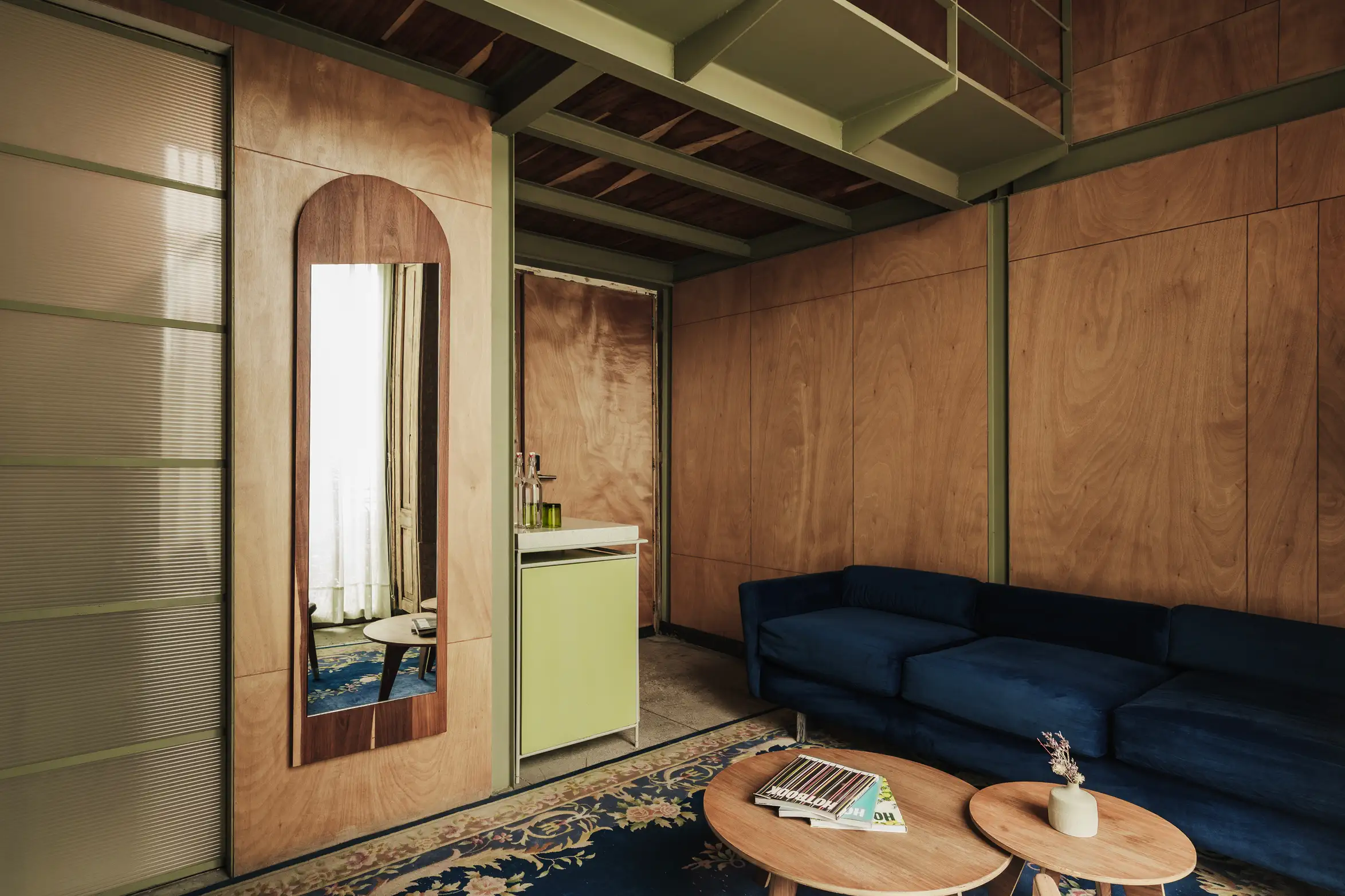 Entre cálidos tonos de madera y vibrantes azules, nuestra segunda habitación ofrece una atmósfera cálida y acogedora, cuidadosamente diseñada para balancear el conjunto entre lo funcional, lo estético, y lo artístico.