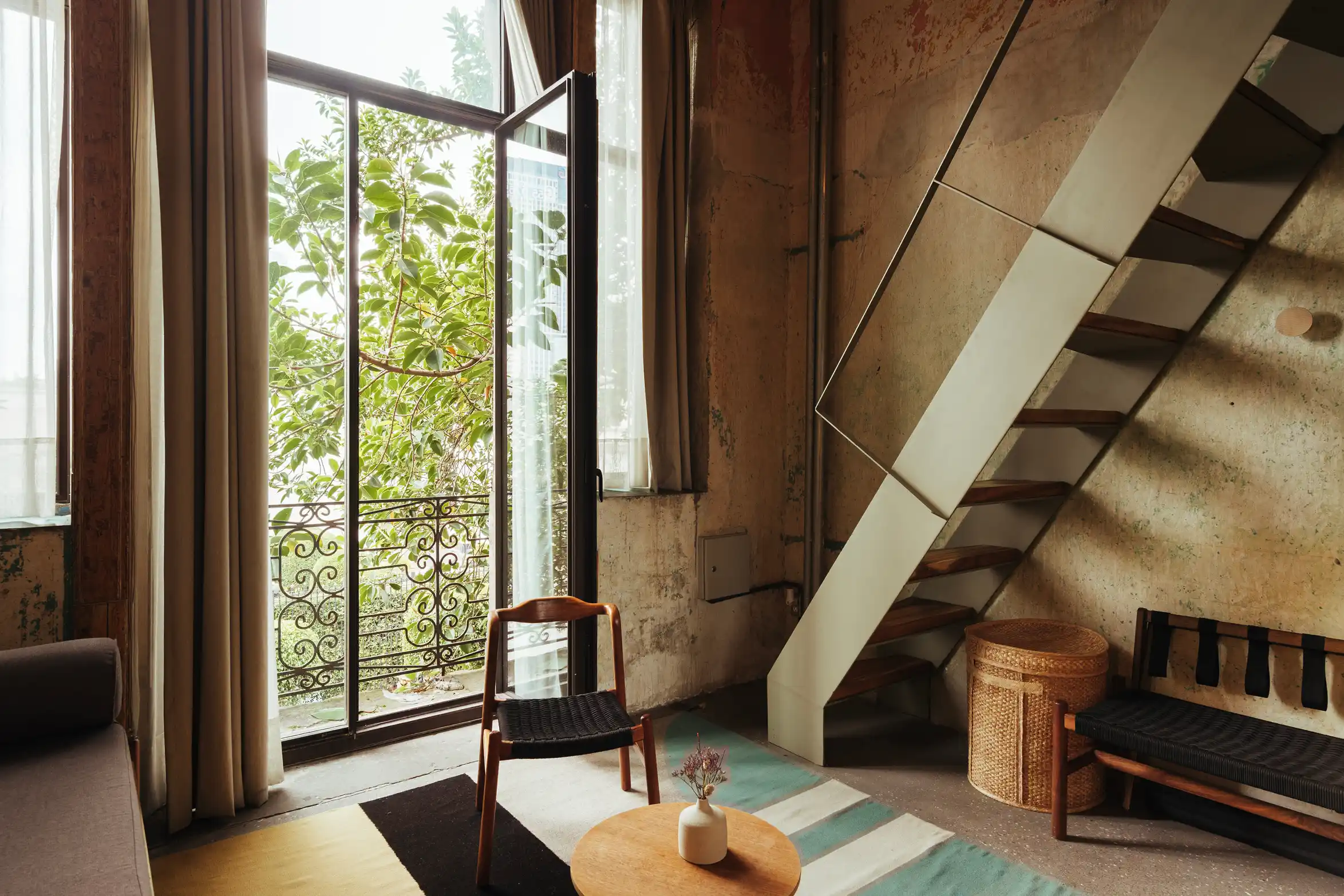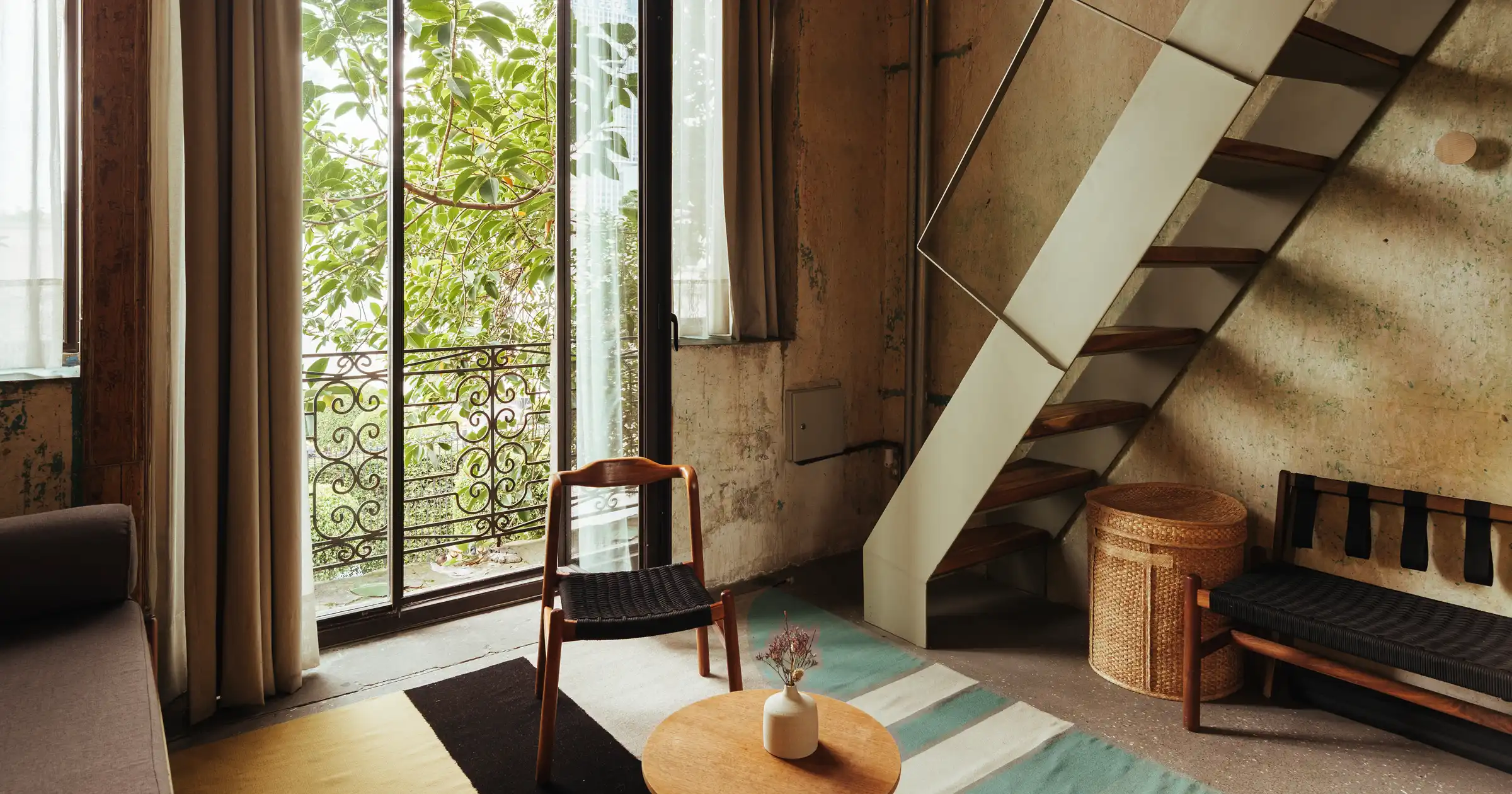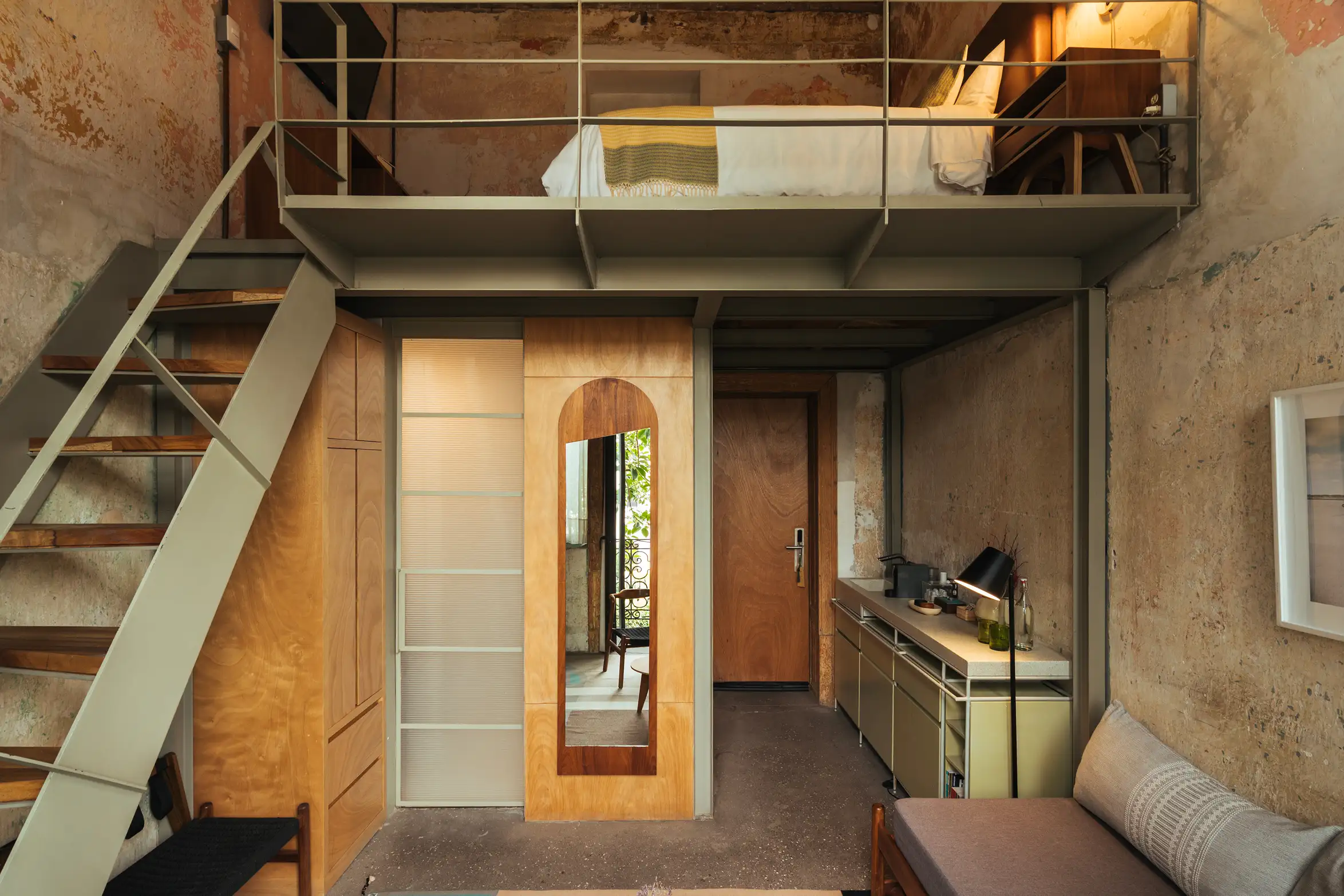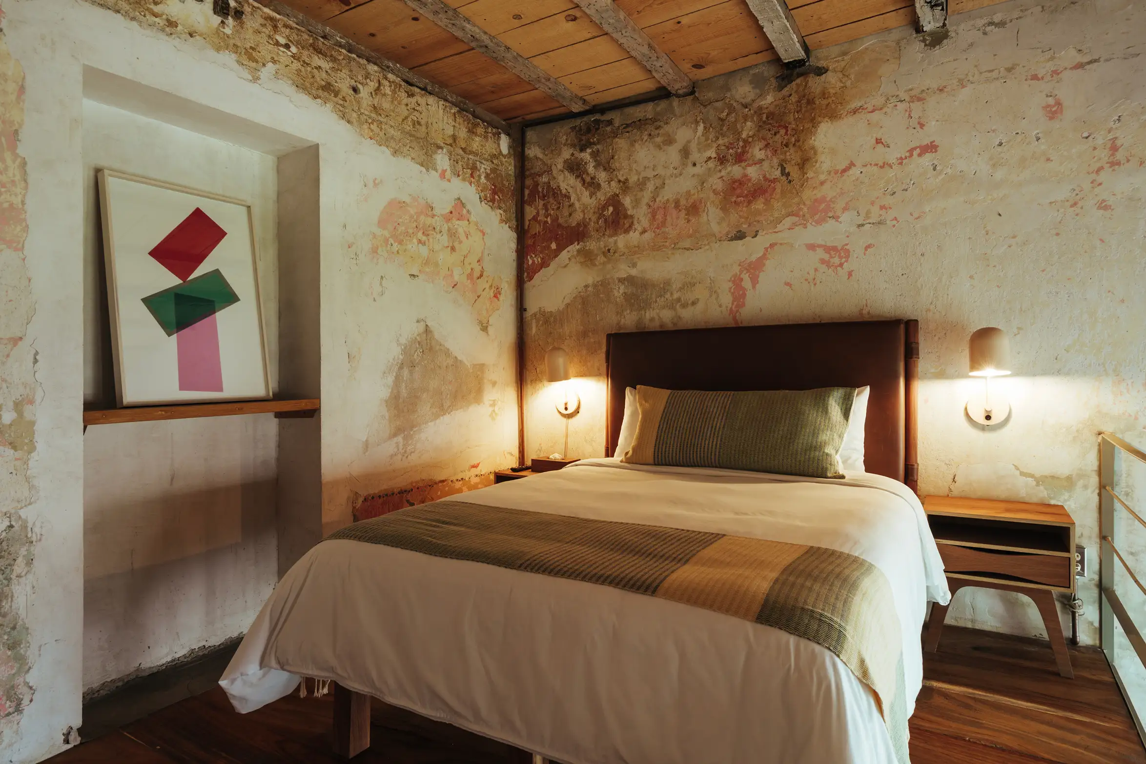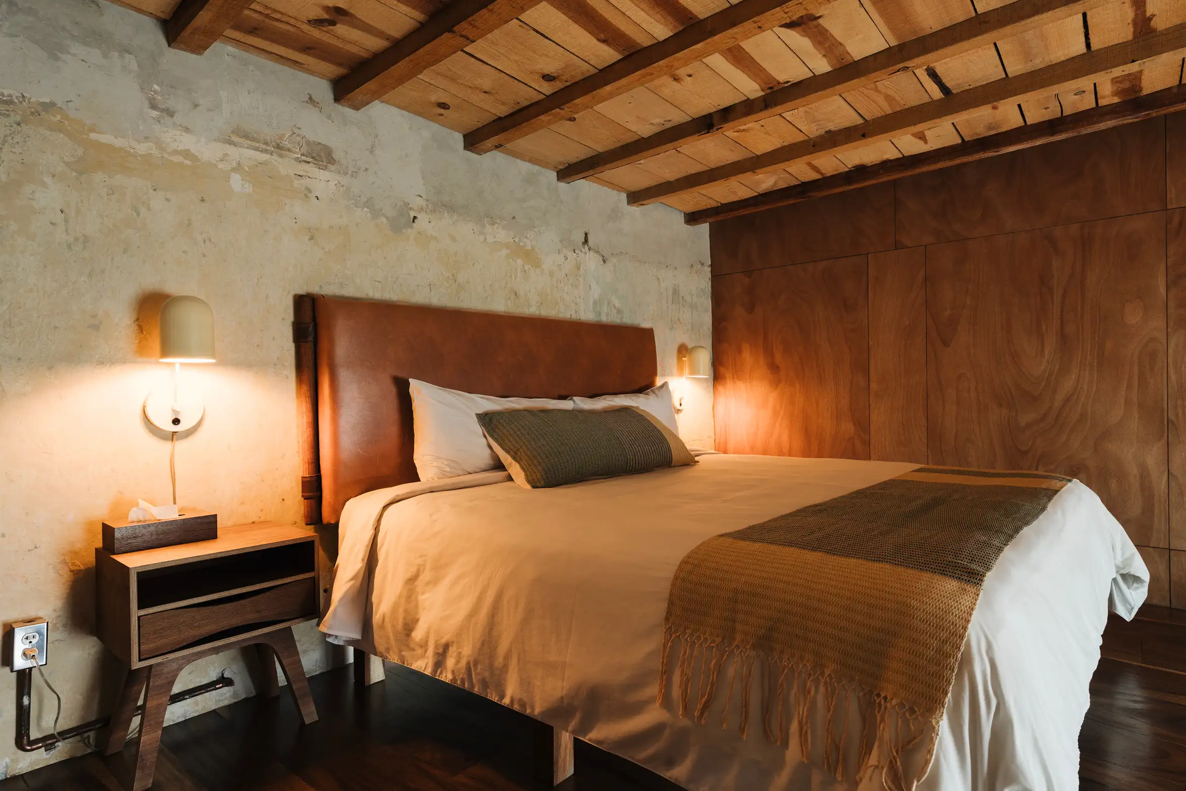Entre cálidos tonos de madera y vibrantes azules, nuestra segunda habitación ofrece una atmósfera cálida y acogedora, cuidadosamente diseñada para balancear el conjunto entre lo funcional, lo estético, y lo artístico.